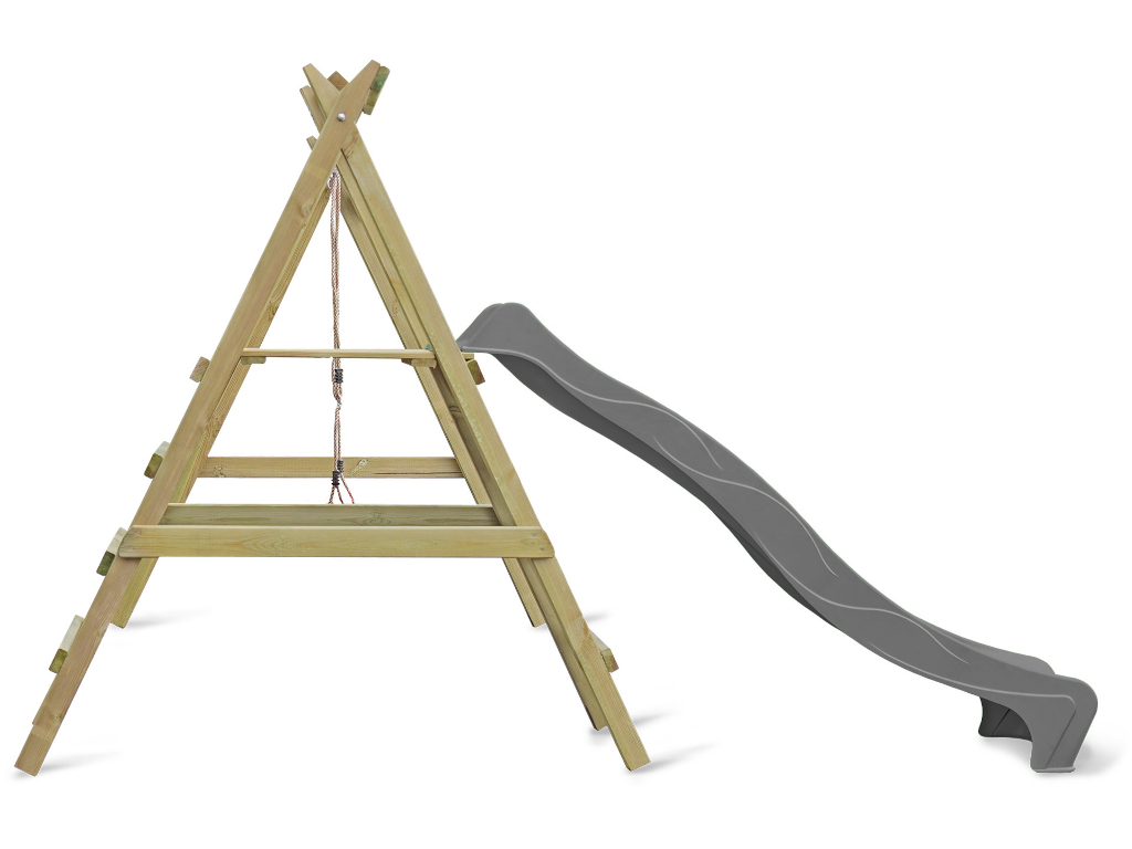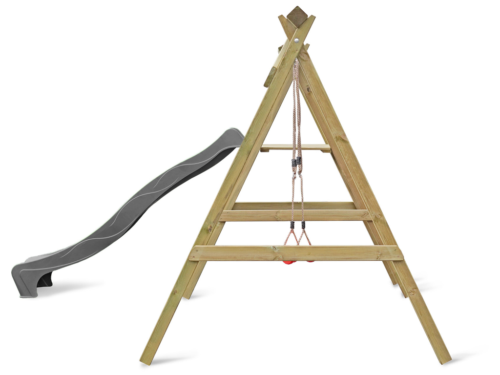 | Leveringsomvang: | Enkele schommel met platform, 2 schommelhaken, 1 glijbaan, 1 schommelzitje |