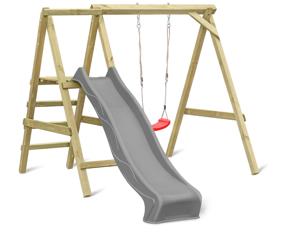 Enkele schommel met platform Cosy Single KDI incl. glijbaan grijs, schommelzitje rood