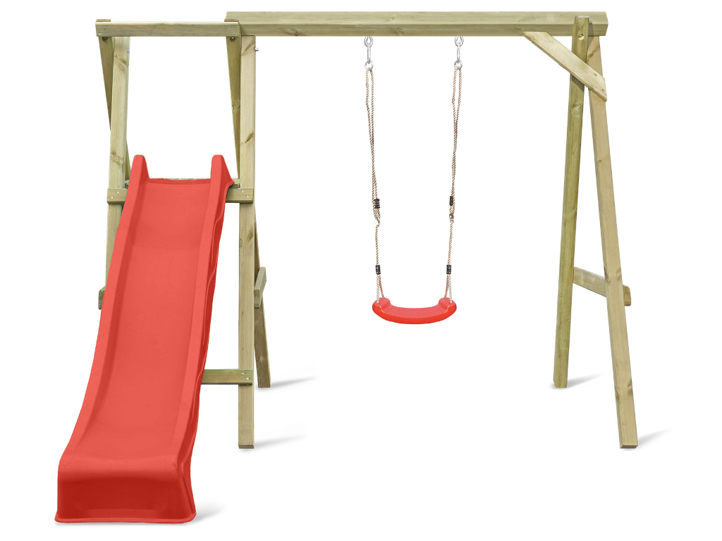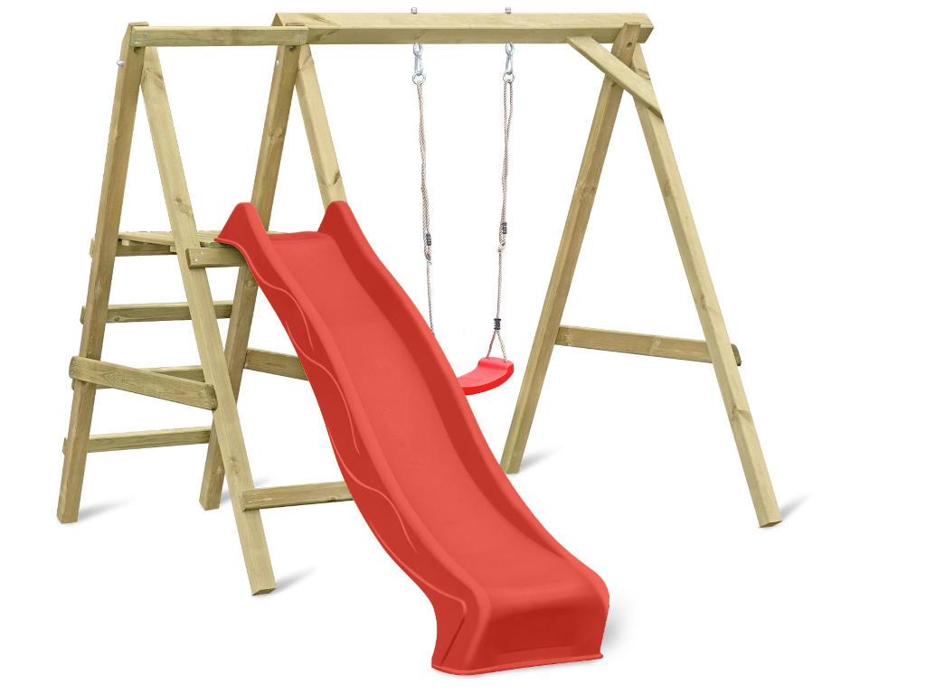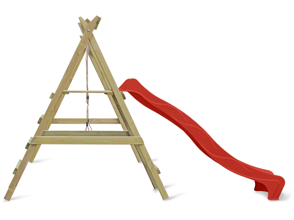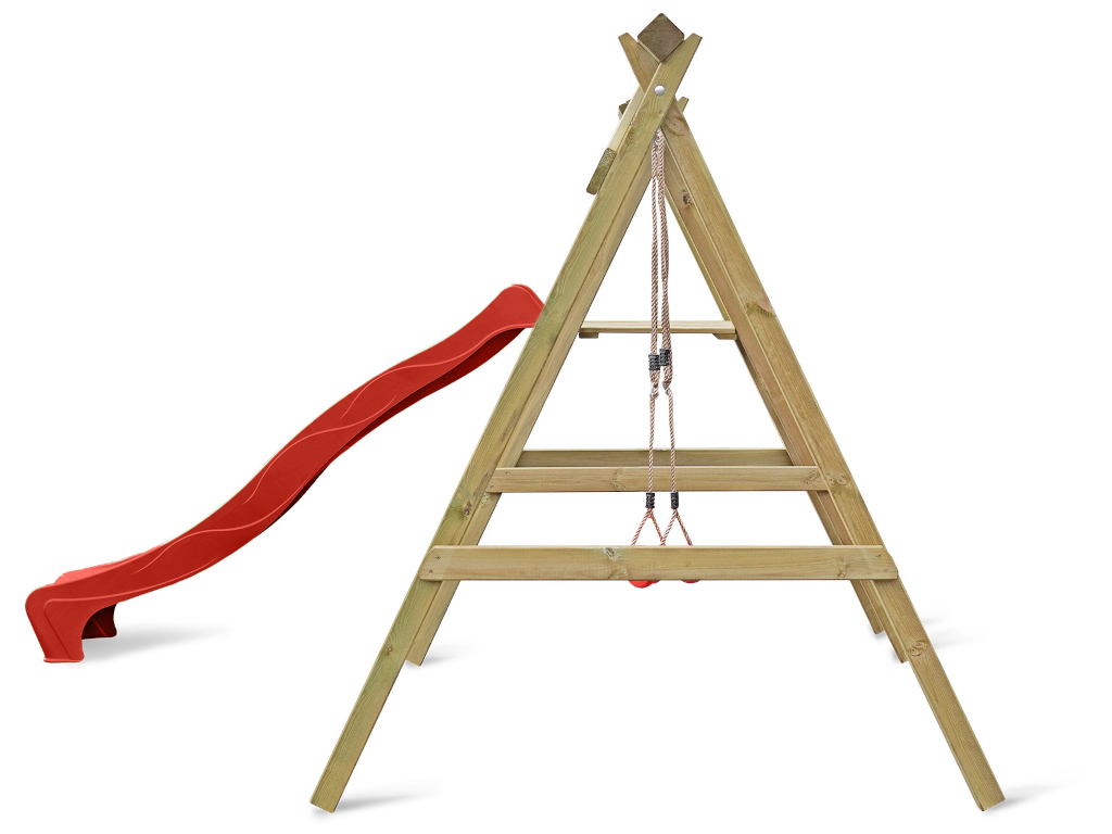 | Leveringsomvang: | Enkele schommel met platform, 2 schommelhaken, 1 glijbaan, 1 schommelzitje |