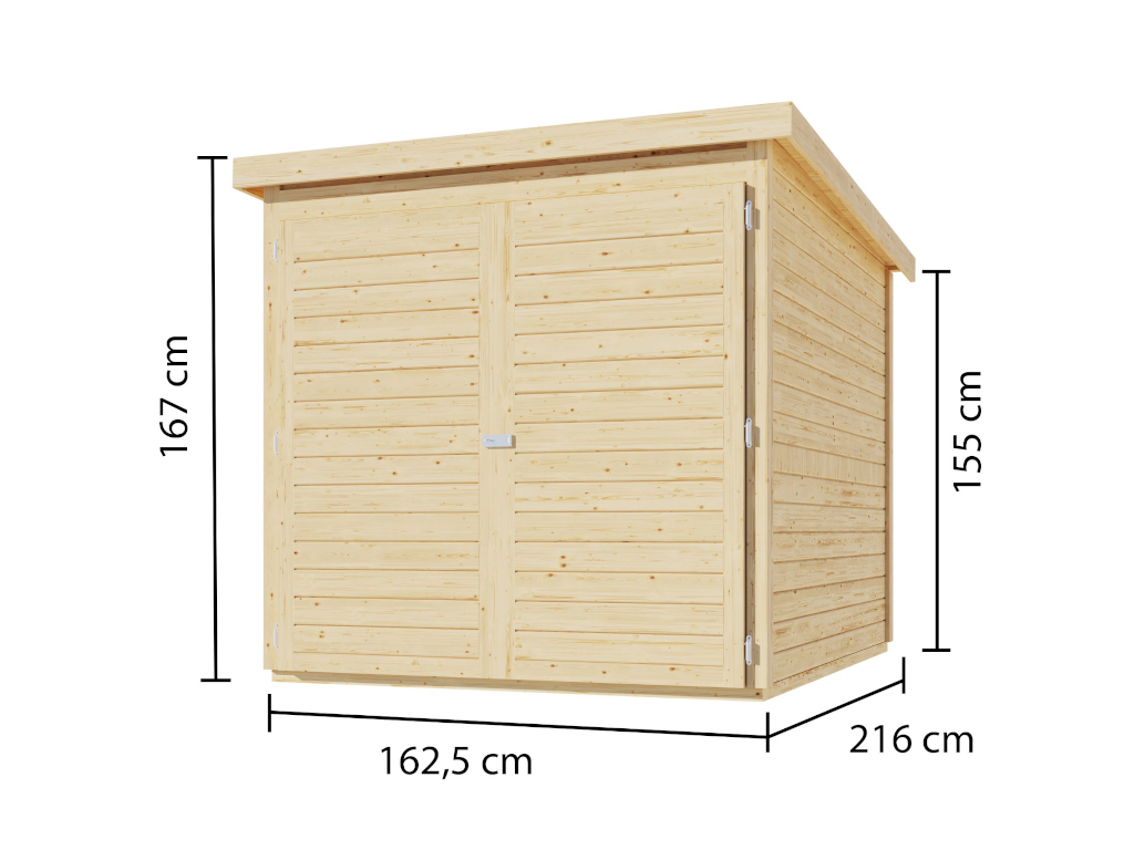 B x D x H: 162,5 x 216 x 167 cm, veiligheidsgrendel