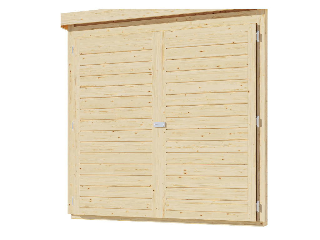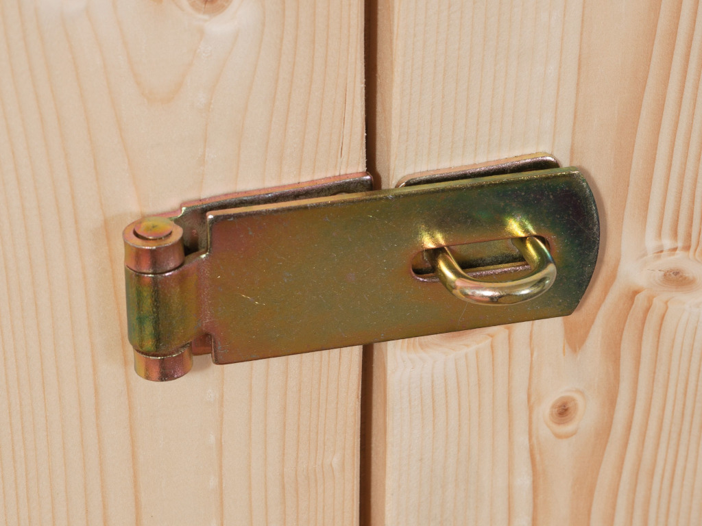 De brede dubbele vleugeldeur met een doorgangsmaat van b 146 x h 140,5 cm is voorzien van een veiligheidsgrendel, waarmee de fietsbox via een hangslot (niet inbegrepen bij de levering) kan worden afgesloten.