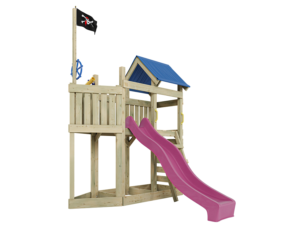 Geïmpregneerd houten speeltoren Pirat Captain Snappy incl. roze glijbaan