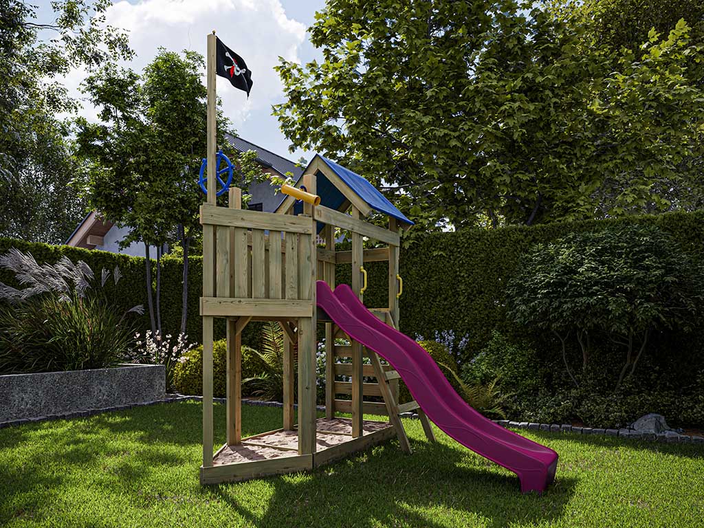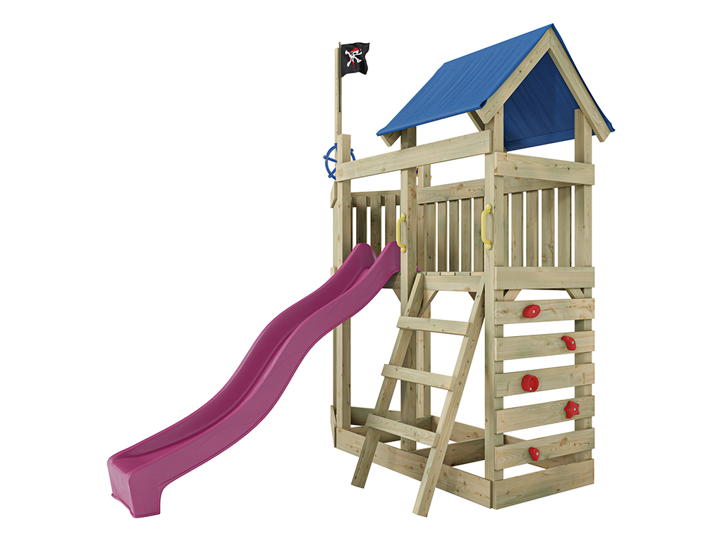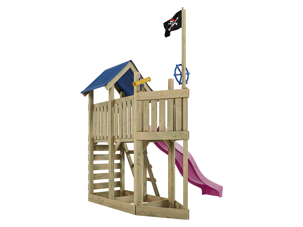 Geïmpregneerd houten speeltoren Pirat Captain Snappy incl. roze glijbaan