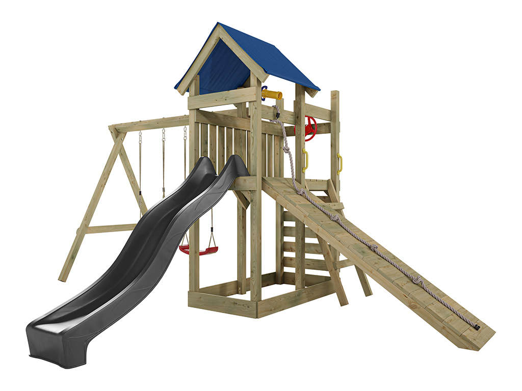 - Incl. grijze glijbaan met een stevige schommelbalk van 9 x 9 cm.