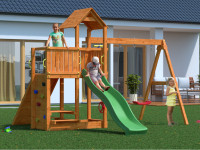 | Leveringsomvang: | Speedy KDI speeltoren, dak van zeil, platformverlenging, dubbele schommel, 2x schommelzitje of 1x nestschommel (afhankelijk van keuze), 4 schommelhaken, 2 handgrepen, zandbak, ladder, klimwand, klimstenen, 1x telescoop, 1x glijbaan |