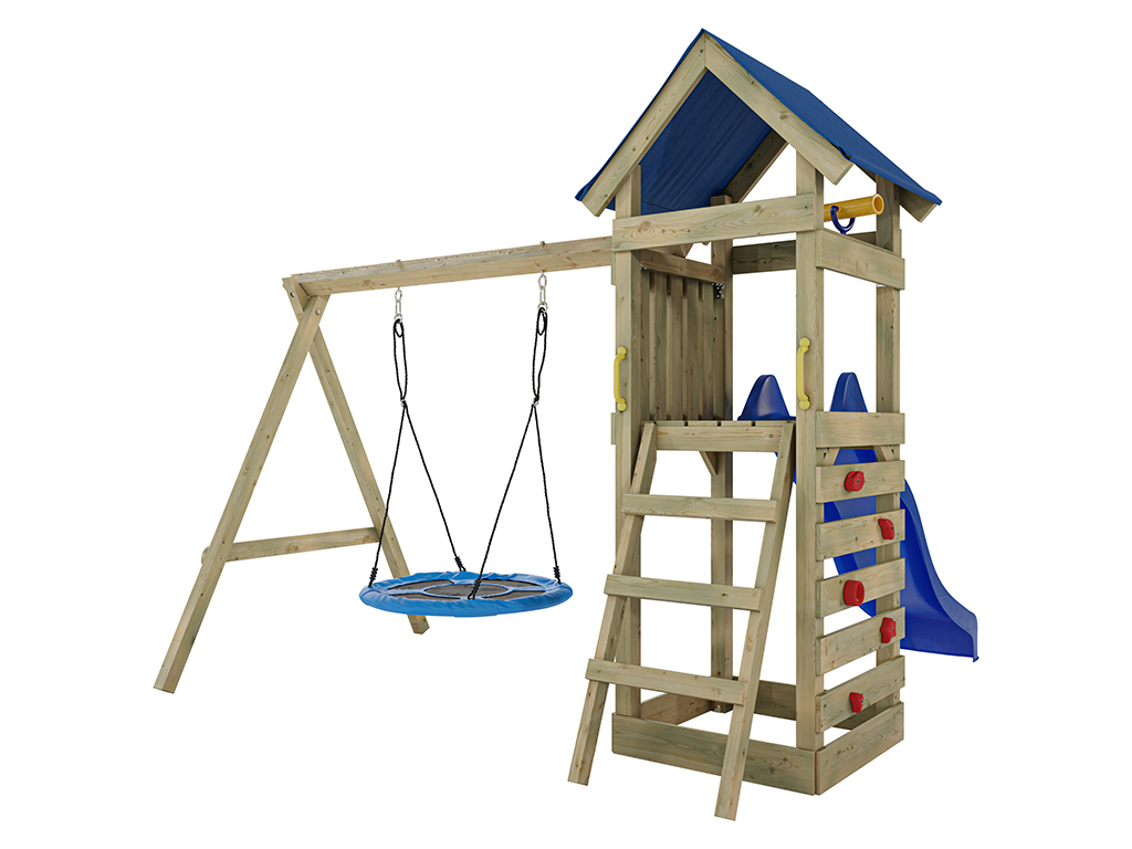 Geïmpregneerde speeltoren "Easy" incl. dubbele schommel, blauwe glijbaan en nestschommel