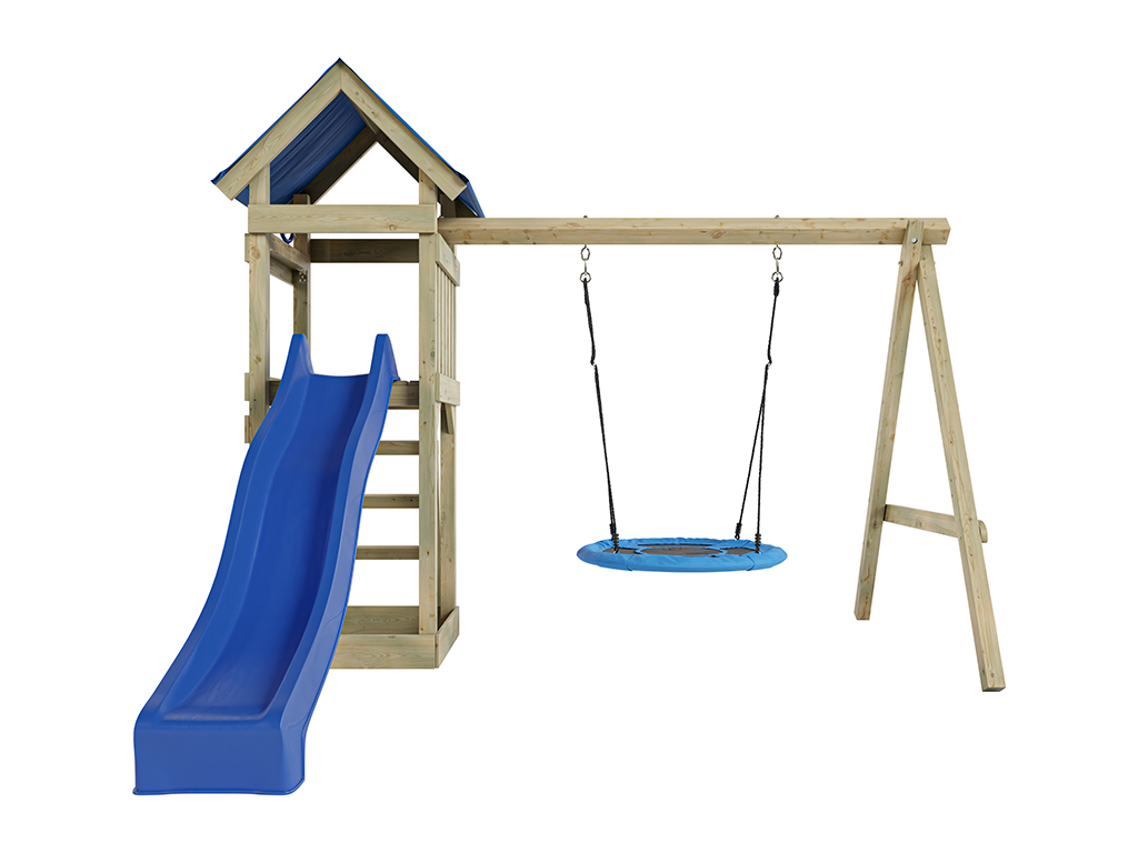 Materiaal: hout, B x D x H: 327 x 317 x 258 cm, incl. klimwand, incl. blauwe glijbaan + nestschommel