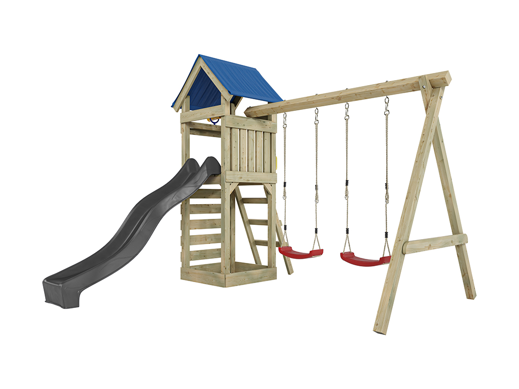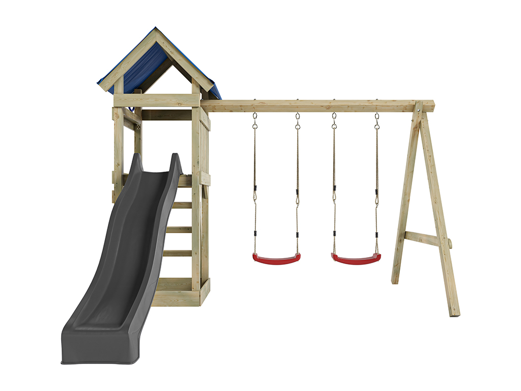 Geïmpregneerde speeltoren Easy incl. dubbele schommel incl. grijze glijbaan + rode schommelzitjes