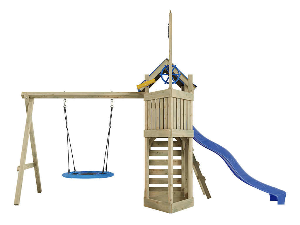 Geïmpregneerd houten speeltoren Captain Snappy incl. blauwe glijbaan + nestschommel Outgarden