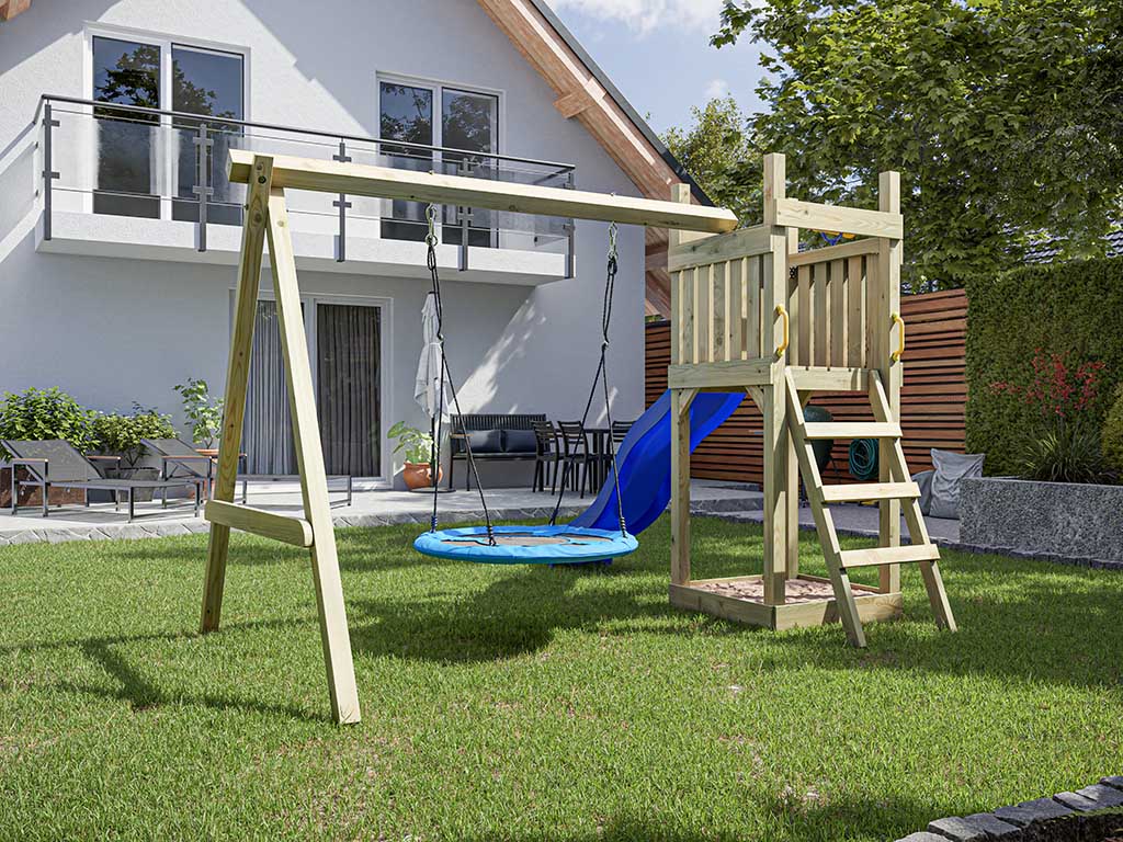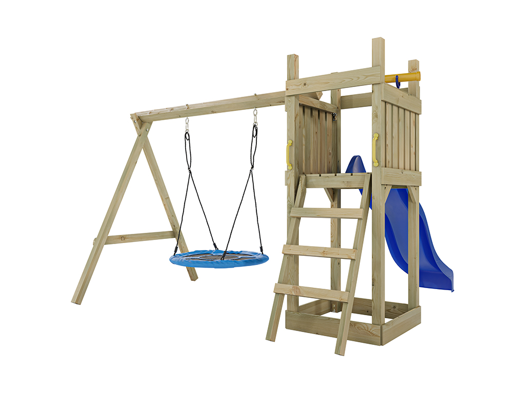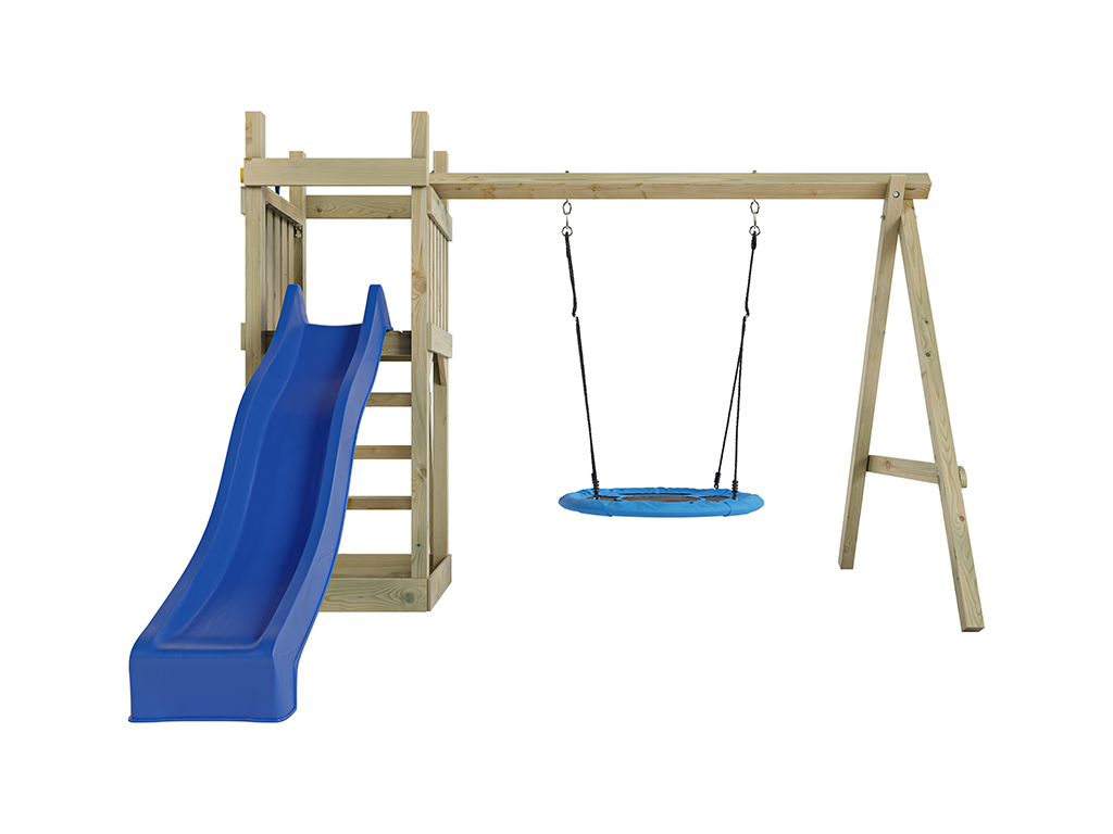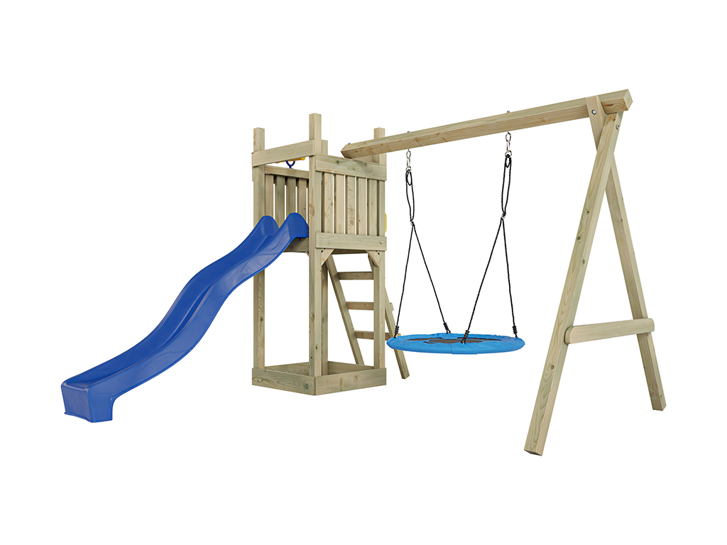 Afmetingen (B x D x H): 315 x 327 x 220 cm, incl. blauwe glijbaan en nestschommel