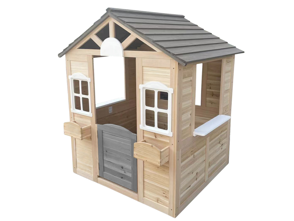 Het speelhuisje van Aziatisch tannenhout (Hemlock) wordt al voorbehandeld in de kleuren grijs, wit en transparant (1-laags). Het speelhuisje moet echter op korte termijn – bij voorkeur nog voor de montage – met een extra laag transparante houtbeschermende beits worden behandeld. Voor langdurig speelplezier met dit buitenspeelgoed is het aan te raden het hout eenmaal per jaar opnieuw te schilderen.