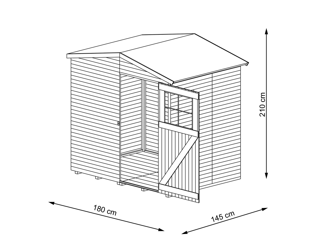 B x D x H: 180 x 145 x 210 cm, Enkele deur, incl. Vloer