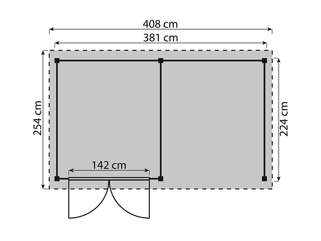 | Buitenmaten met dakoverstek (B x D): | 408 x 254 cm |