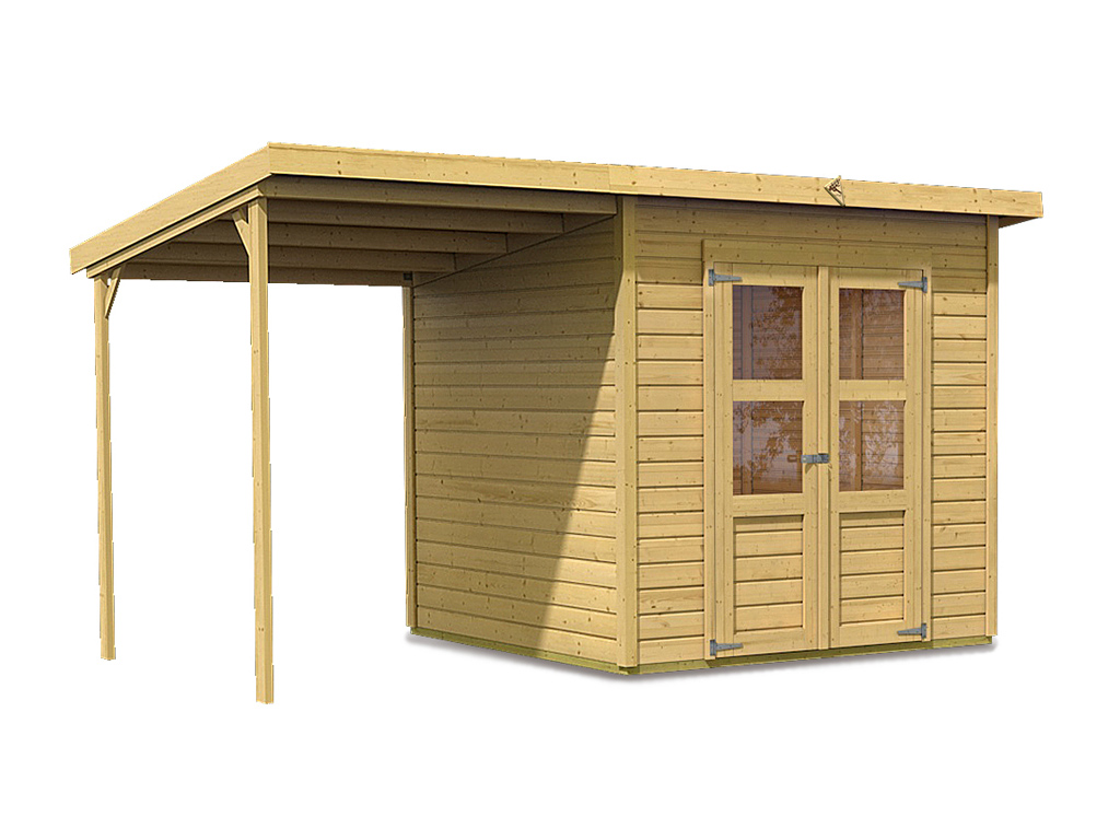 Tuinhuis Livo 2 28 mm onbehandeld met 264 cm aanbouw Tuinhuis Livo 2 28 mm onbehandeld met 264 cm...