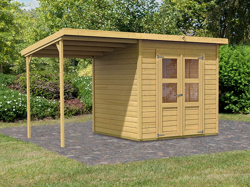 Gereedschapshuisje Merseburg 4 incl. 166 cm aanbouwdak ECO 14 mm onbehandeld