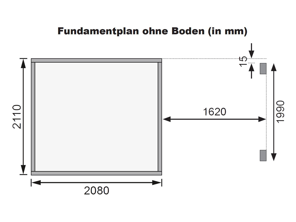 Basisafmeting huis (B x D): 208 x 210 cm
