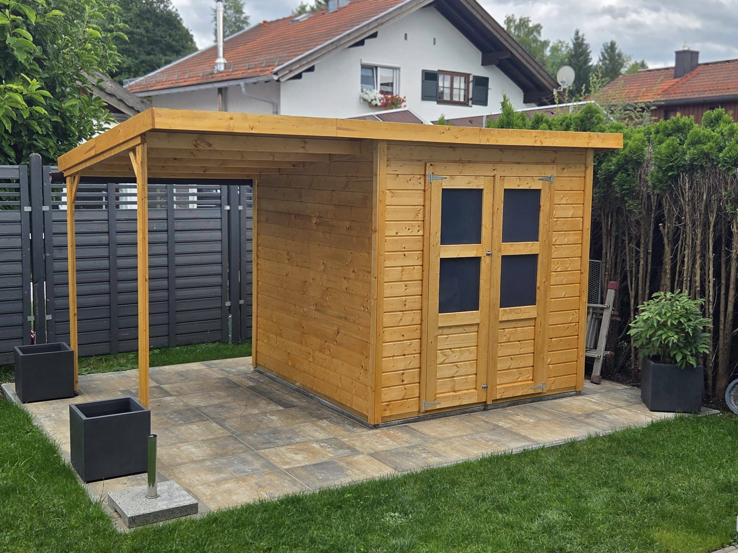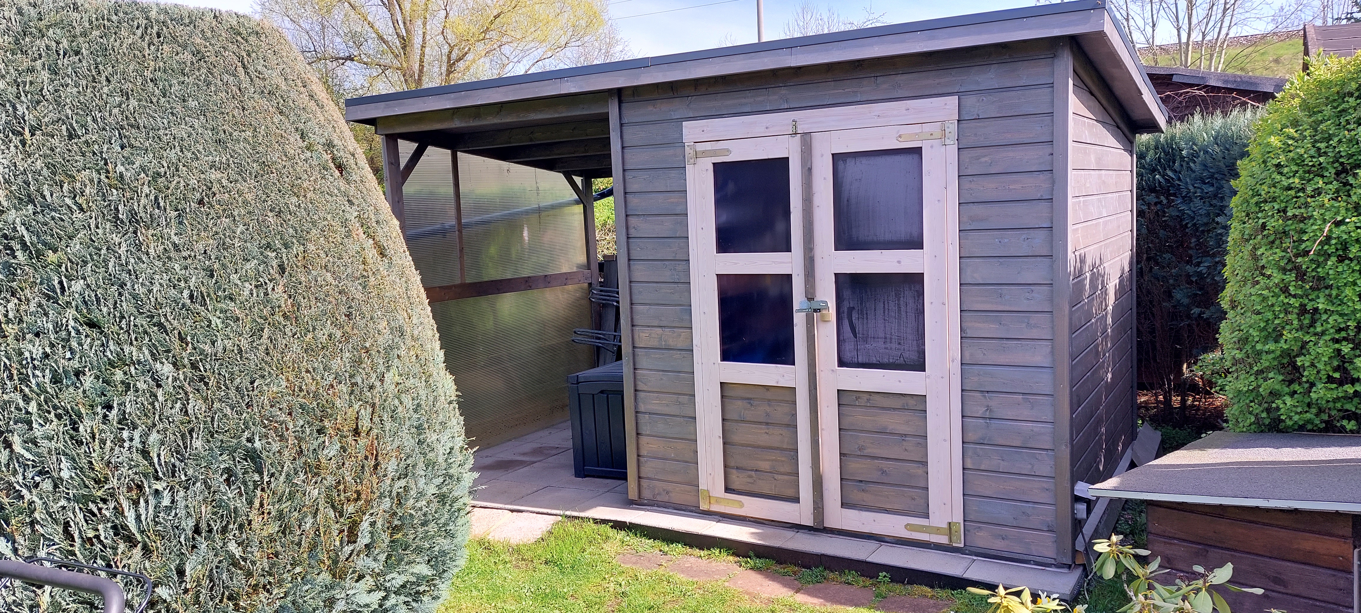 Klantenbeoordelingen voor "Gereedschapshuisje Merseburg 4 incl. 166 cm aanbouwdak ECO 14 mm onbehandeld"