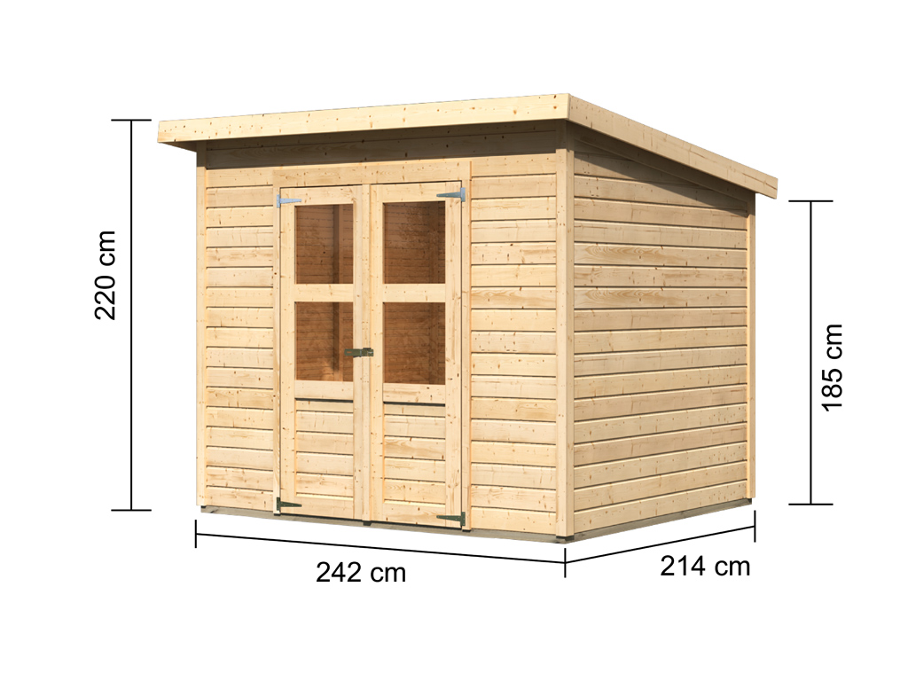 B x D x H: 265 x 236 x 220 cm, Basisafmetingen: B x D: 238 x 210 cm, incl. Dubbele vleugeldeur met lichtuitsparingen