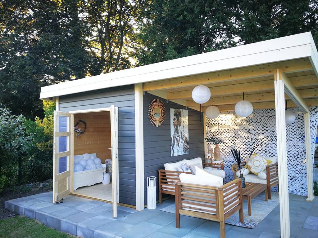 De overdekte buitenruimte is ideaal voor je tuinmeubelen en biedt bescherming tegen regen en zon.