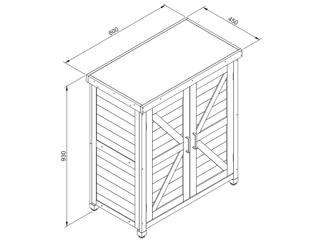 | Buitenmaten met dakoverstek (B x D): | 80 x 45 cm |