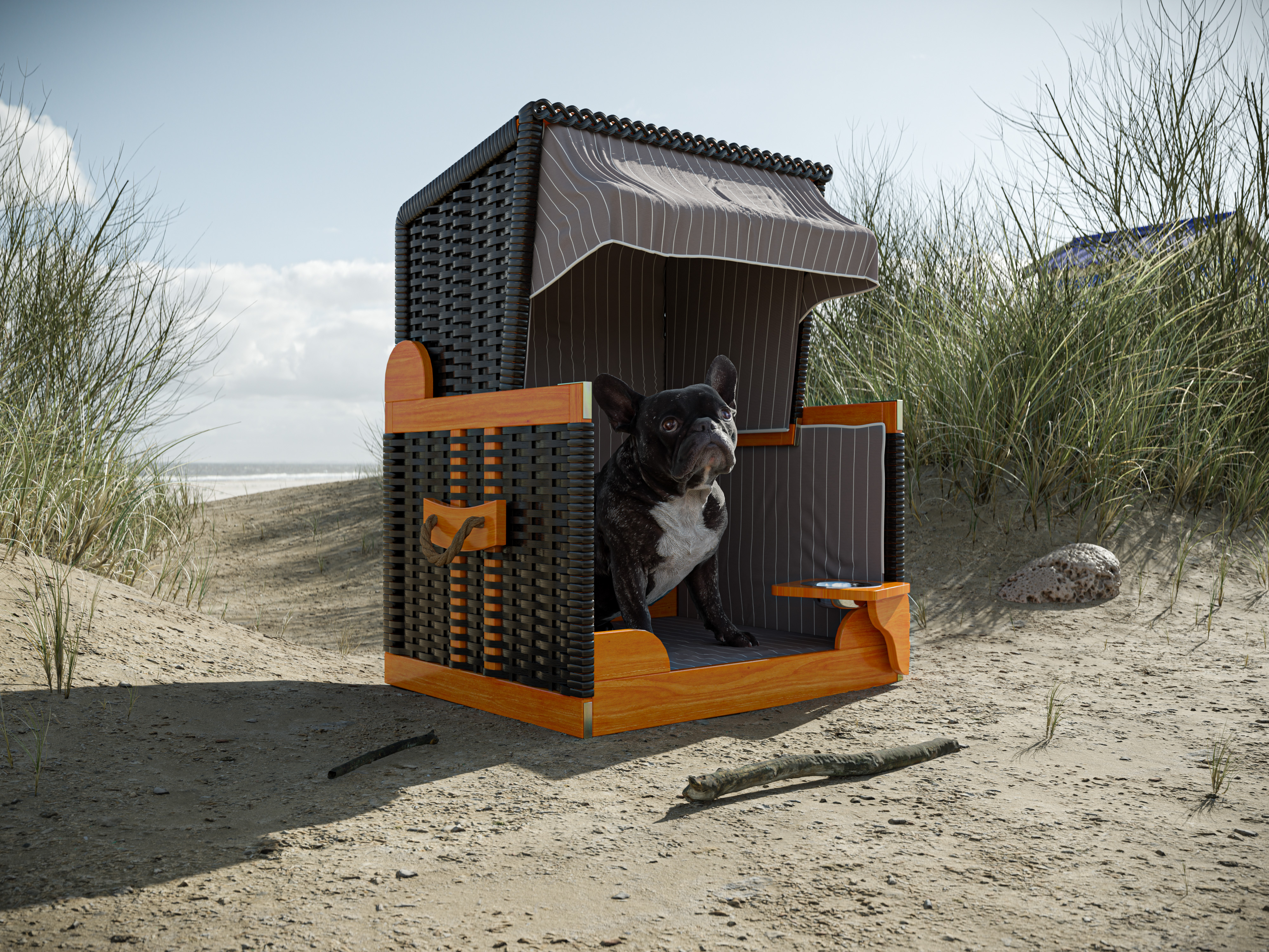 Fijn zand onder de poten, een koele zeebries in de vacht en het ruisen van de golven in de flaporen – Als je op vakantie bent of aan zee ontspant, mag je trouwe viervoeter niet ontbreken. Met de strandmand heeft ook hij een schaduwplekje.