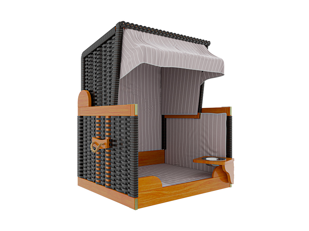Leveringsomvang: Strandstoel, 1 voerbak, 1 beschermhoes, 1 zitkussen
