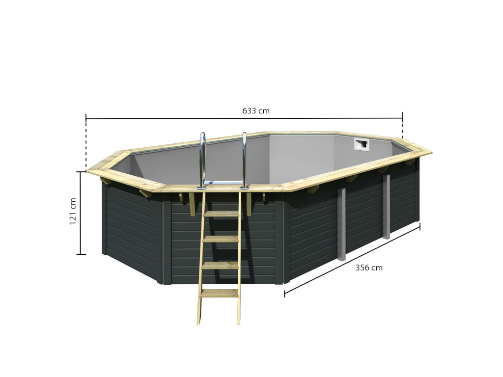 Houten zwembad Karibu model 4X 38 mm, antraciet