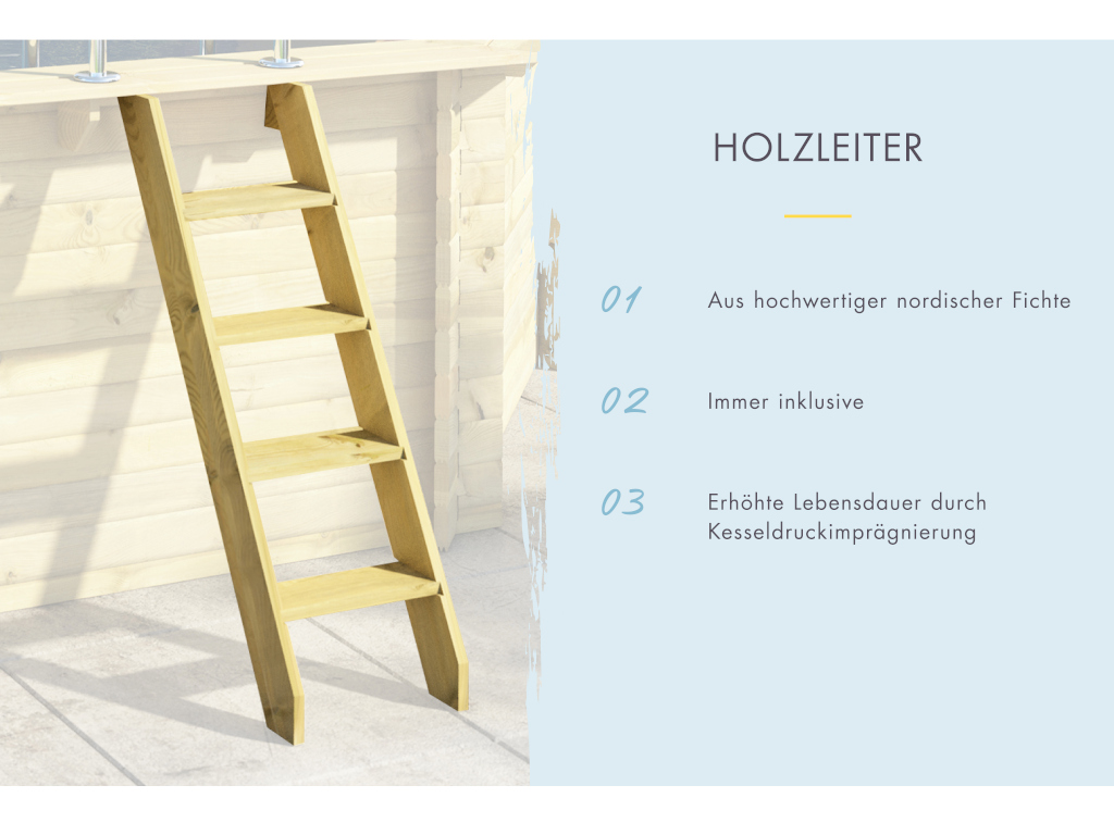 De geïmpregneerde en daardoor weerbestendige blokprofielen van geïmpregneerd hout zorgen voor stabiliteit, terwijl de binnenbekleding met voorgemonteerde zwembadfolie het bassin waterdicht maakt. Het Karibu massief houten opzetzwembad overtuigt door de robuuste constructie en de aantrekkelijke prijs-kwaliteitverhouding. Houd daarbij altijd rekening met de natuurlijke eigenschappen van hout.