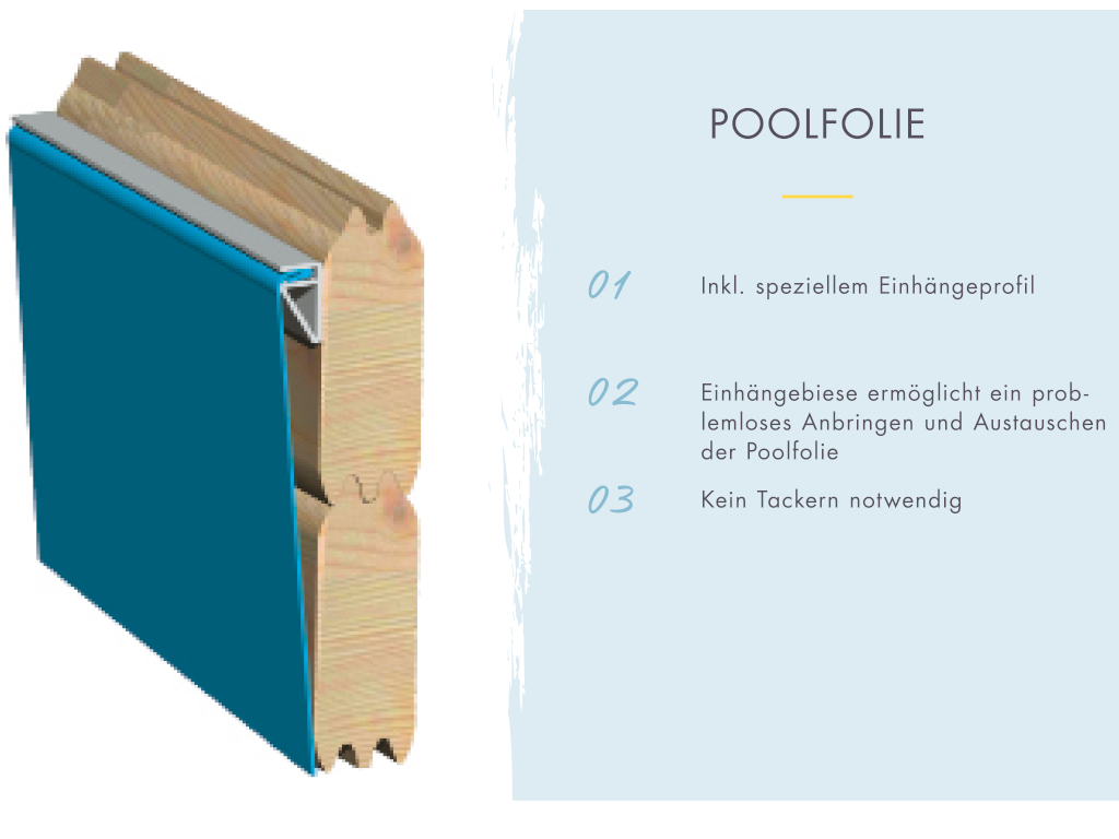 Dankzij een waterdiepte van 111 cm en een breedte van 400 cm biedt dit opzetzwembad ruimschoots plaats voor uiteenlopende wensen. De zwembadfolie wordt in een hoogwaardige ophangrail vastgeklikt. Dit vermindert plooien in de folie en maakt een eventueel noodzakelijke vervanging van de folie zeer eenvoudig.