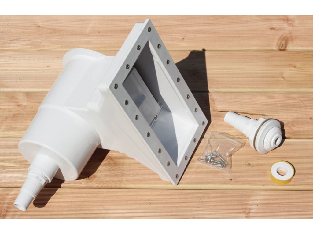 B x D x H: 547 x 547 x 124 cm, geïmpregneerd, incl. zwembadfolie, beschermvlies, skimmer, filterinstallatie