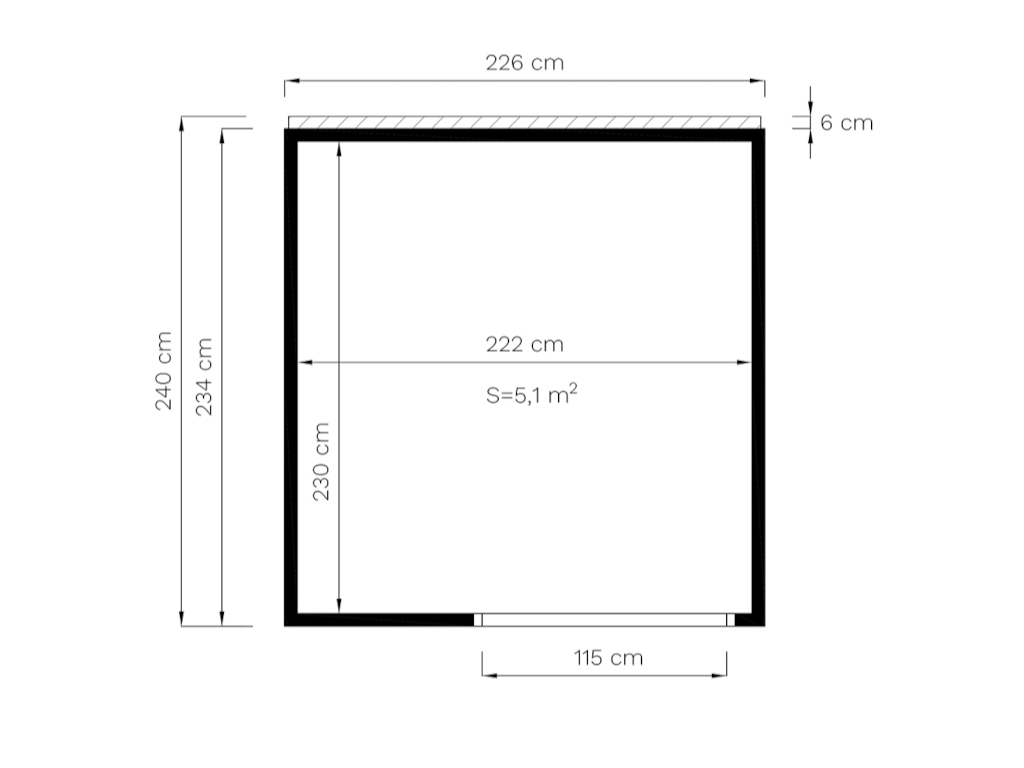 | Buitenmaten met dakoverstek (B x D): | 226 x 240 cm |