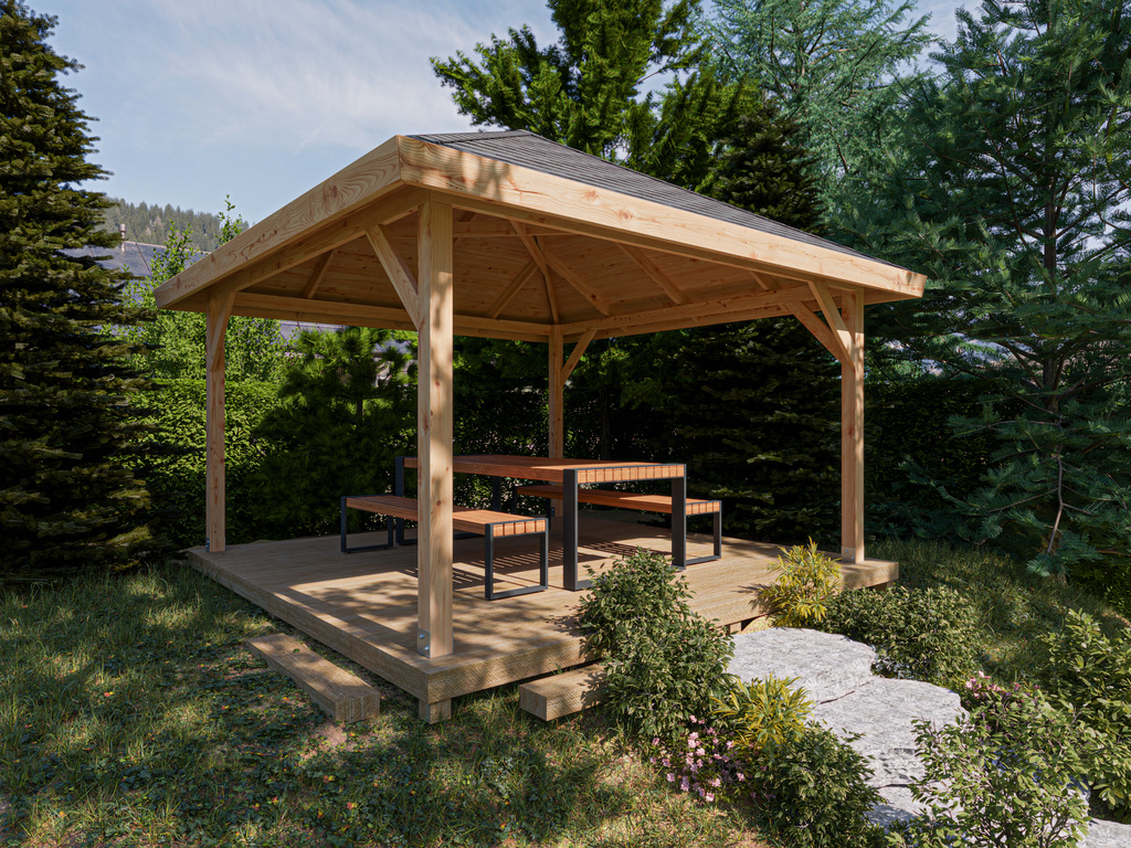 Afbeelding toont paviljoen inclusief dakbedekking (niet inbegrepen)