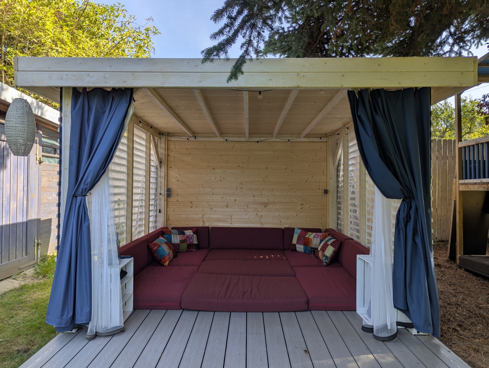 Het onbehandelde hout zorgt voor een natuurlijke en tijdloze uitstraling. Bovendien geeft het ruwe hout je de vrijheid om de buitenkant van de paviljoen helemaal naar eigen smaak vorm te geven.