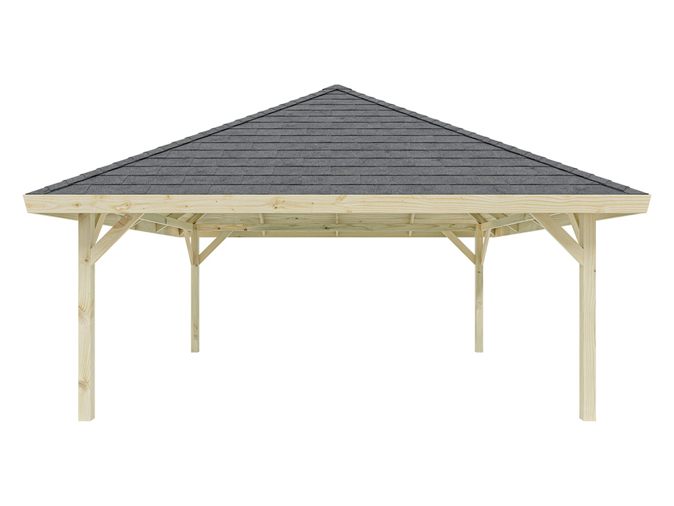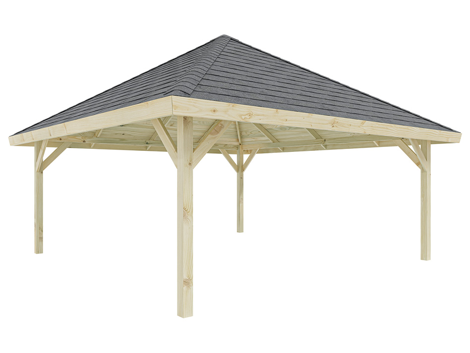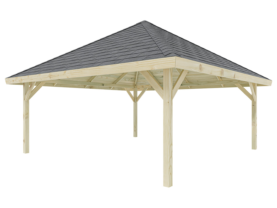 Dit hoogwaardig afgewerkte paviljoen onderscheidt zich door het zorgvuldig geselecteerde, eersteklas grenenhout. Grenen laat zich gemakkelijk bewerken en heeft een egale, rechte vezelstructuur. Bovendien is grenen dankzij de korte transportwegen het voordeligste inheemse hout.