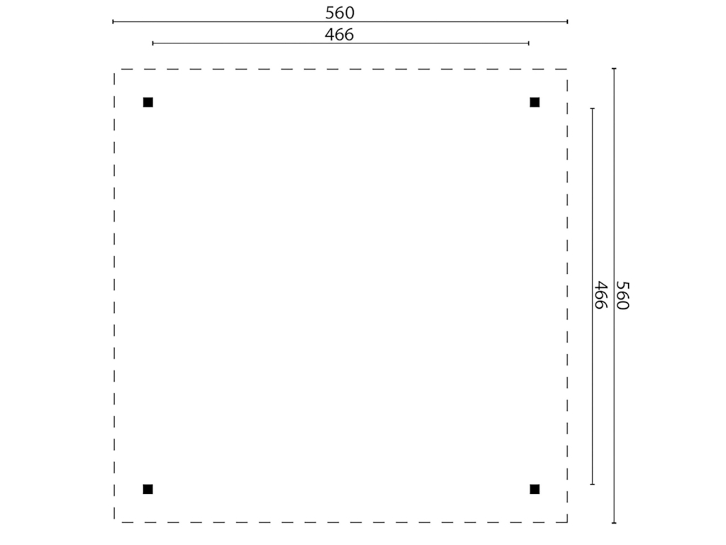 Het paviljoen heeft een breedte van 560 cm, een hoogte van 375 cm en een diepte van 560 cm. Gebruik de plattegrond en de meegeleverde montagehandleiding als leidraad voor het aanleggen van het fundament.