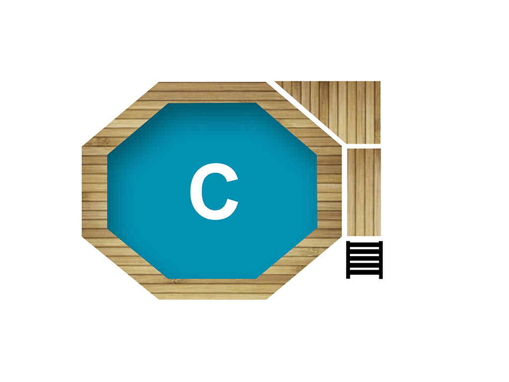 Houten Zwembad Model 1 Variant C kdi met 2-delig zonneterras