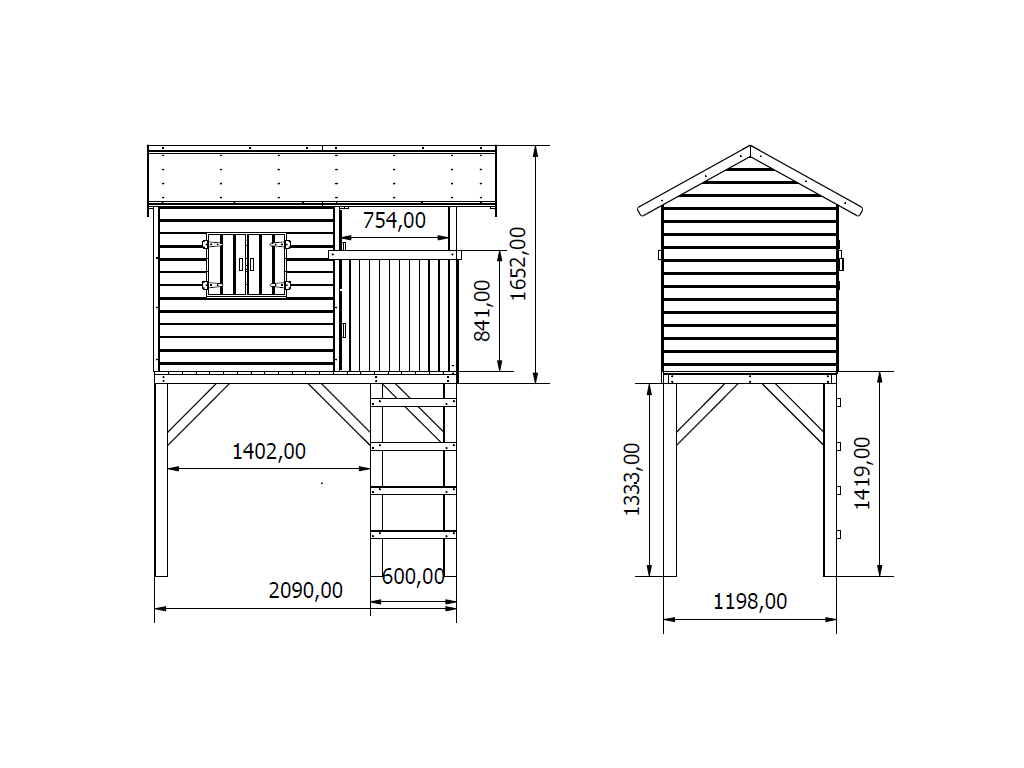 Dit speelhuisje op palen wordt geleverd met een enkele deur, raam, ladder en handgreep en zorgt voor uren buitenspeelplezier voor kinderen.