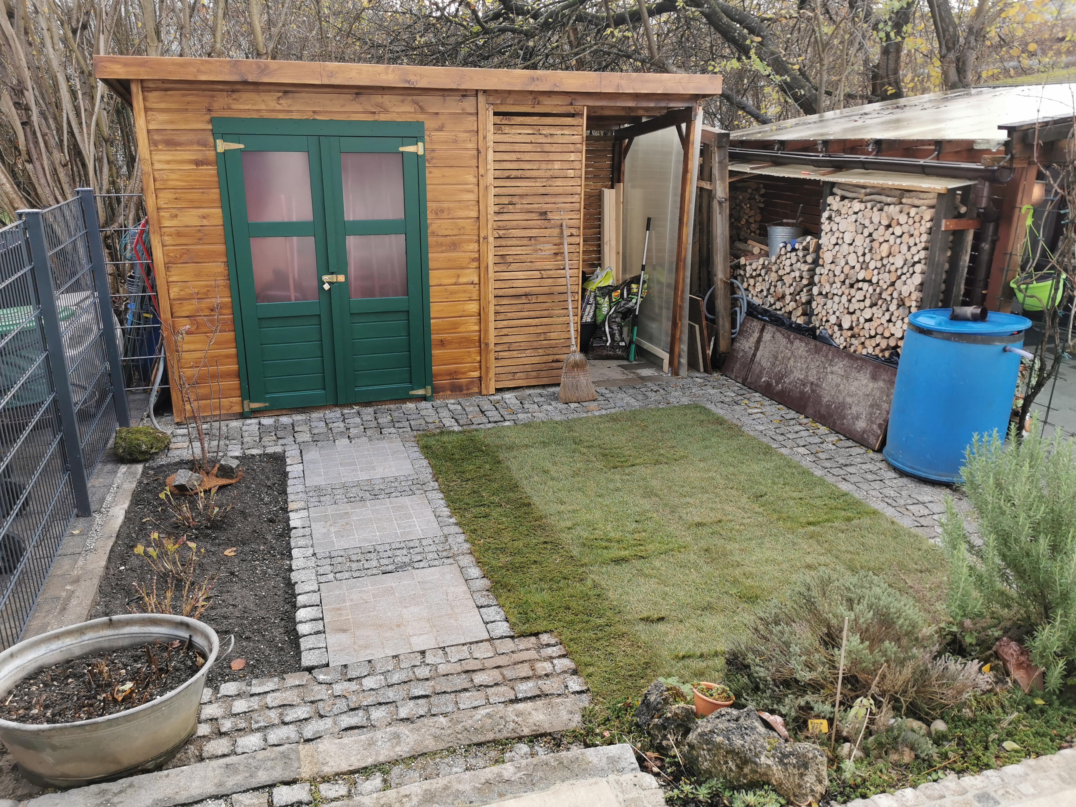 Klantenbeoordelingen voor "KA tuinhuis gereedschapshuisje Merseburg 3 incl. 166 cm aanbouwdak ECO 14 mm onbehandeld"