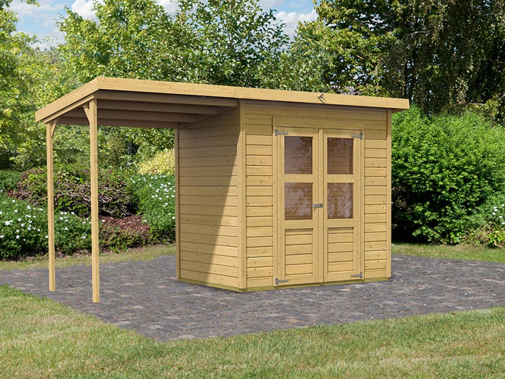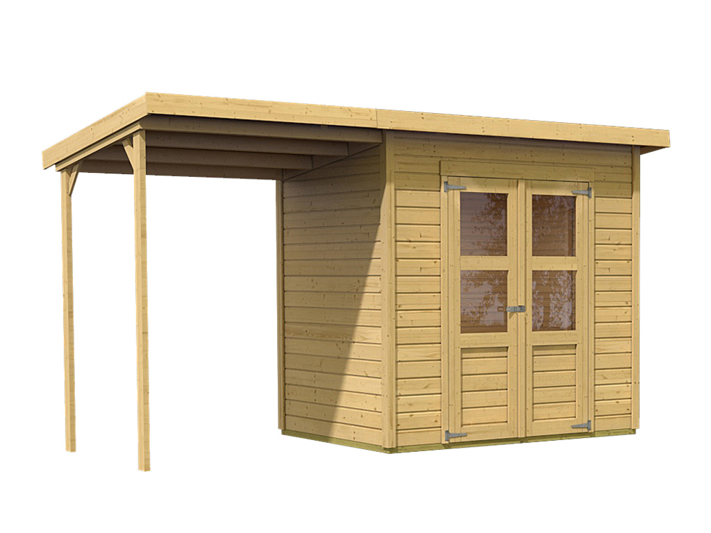 KA tuinhuis gereedschapshuisje Merseburg 3 incl. 166 cm aanbouwdak ECO 14 mm onbehandeld