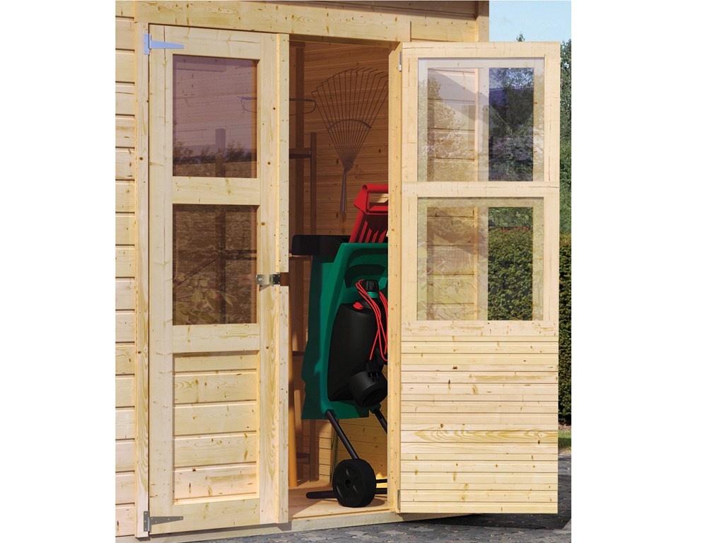 Berging SET Glücksburg 2 ECO 19 mm natuurlijke afwerking, incl. 1,9 m lessenaarsdak Berging SET Glücksburg 2 ECO 19 mm natuurlijke...