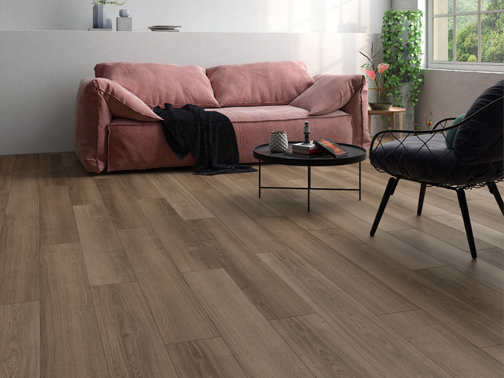 Met behulp van de klikverbinding kan de vloer eenvoudig zwevend worden geïnstalleerd. In wachtruimtes, kantoren of boetieks met continu gebruik overtuigt deze vloer in commerciële ruimtes met gebruiksklasse (NK) 32.