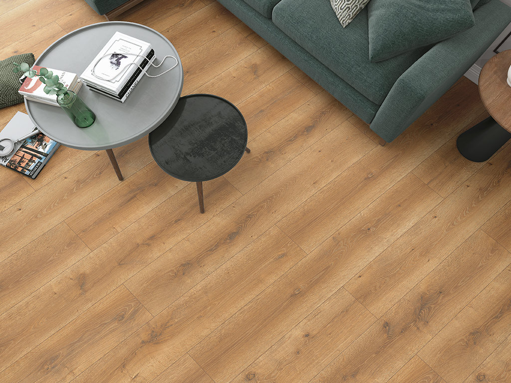 De plankdikte is ongeveer 8 mm, wat overeenkomt met licht commercieel gebruik. Zwevend leggen zonder te lijmen – geen probleem dankzij de klikverbinding Klick-System.