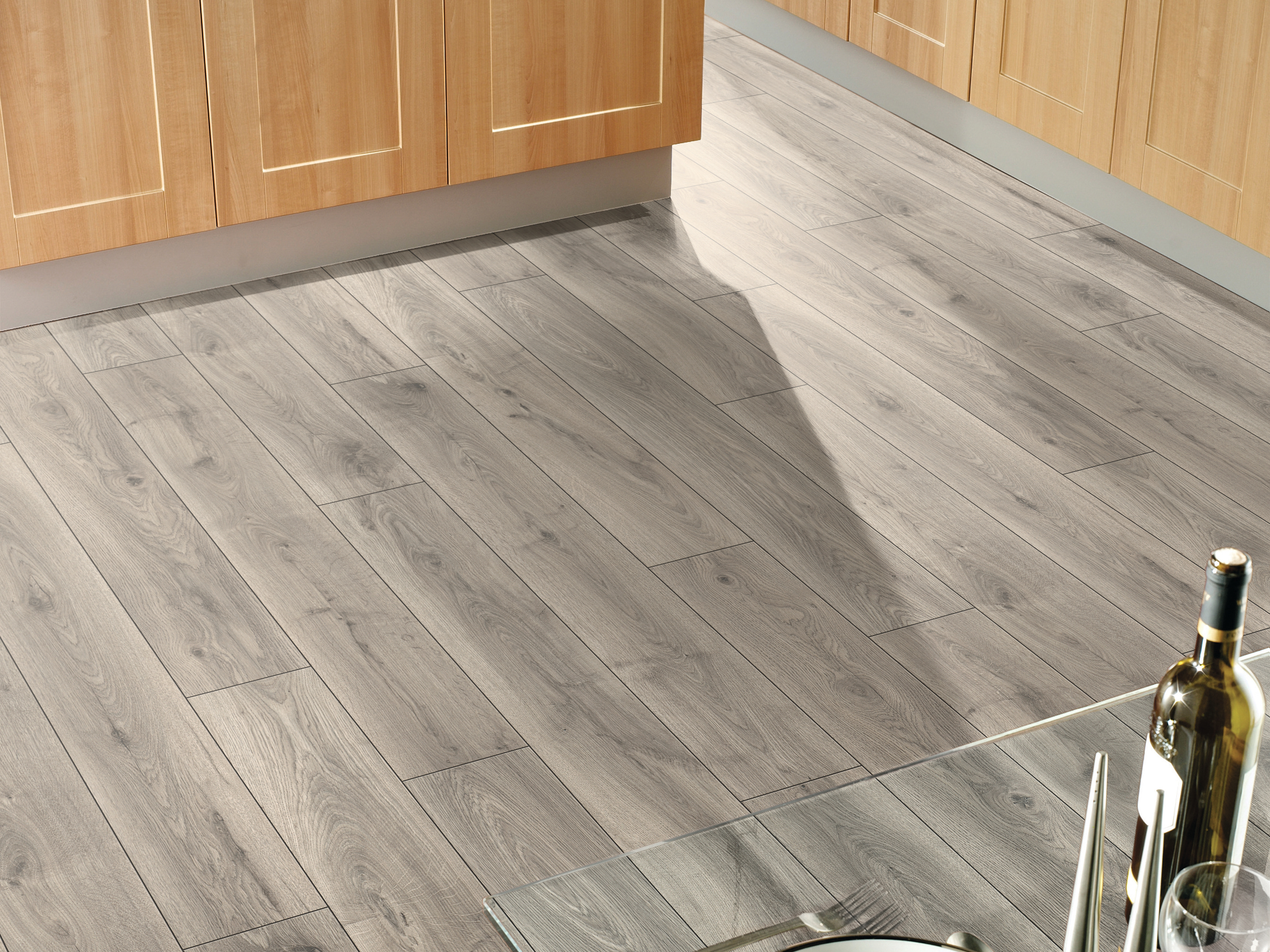 1288 × 195 x 8 mm, kliksysteem, geschikt voor vochtige ruimtes, gelijkmatige houtnerf, afgeschuinde rand aan 4 zijden