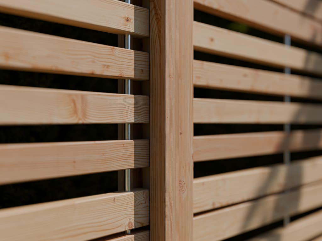 Het tuinscherm is gemaakt van Europees larikshout. Lariks is een van de hardste inheemse naaldhoutsoorten. Met zijn geel- tot oranjerode kleur en uitgesproken nerf geeft het hout een levendige uitstraling. Het bijzonder massieve larikshout is zeer slijtvast en zelfs zuurbestendig. Weersinvloeden hebben daardoor weinig effect op de matig tot goed duurzame houtsoort. De hoge houtdichtheid beschermt het materiaal bovendien van nature tegen houtaantastende insecten en schimmels. Dankzij de hoge elasticiteit laat het hout zich goed bewerken. Voor een strak resultaat wordt voorboren desondanks aanbevolen.