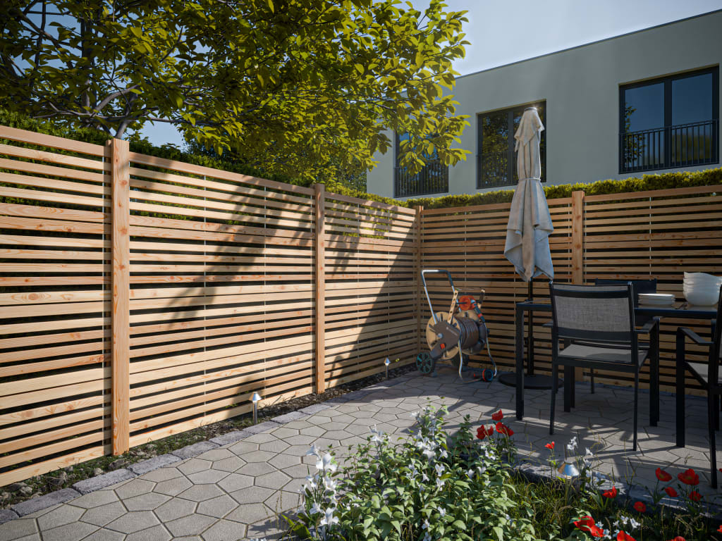 De leveringsomvang omvat 4 elementen voor de schutting. Zo kun je heel eenvoudig zelf bepalen hoeveel je nodig hebt voor jouw project.