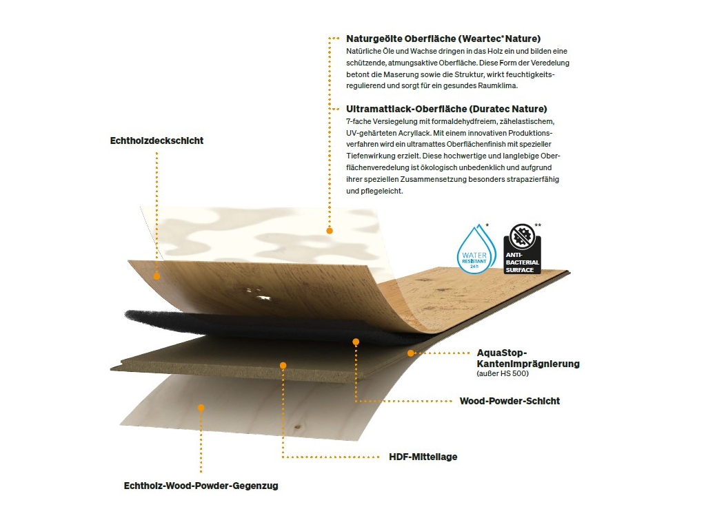 - Lindura HD 400 – innovatieve, zeer slijtvaste hightech houten vloer in XXL-formaat met Wood-Powder-technologie