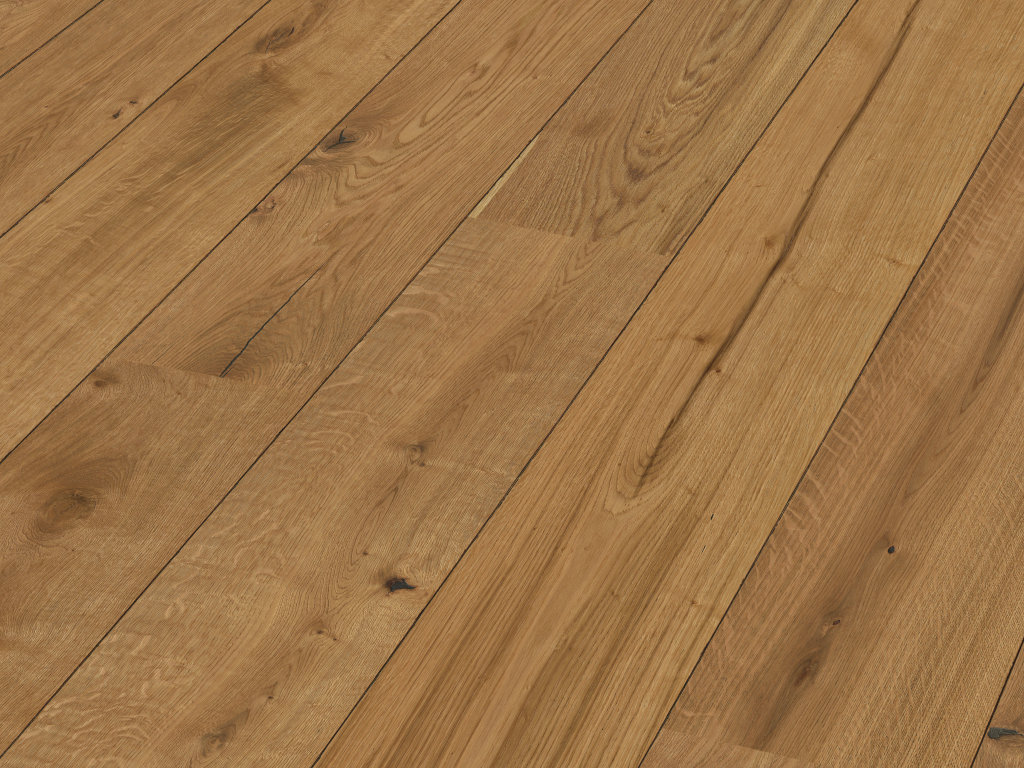 Landhuisdelen hebben met hun éénstrooks-look een natuurlijke en rustieke uitstraling die elke ruimte warm en gezellig laat aanvoelen. De rondom vier zijden aangebrachte V-groef structureert het legbeeld en zorgt voor een harmonieus patroon. Hoogwaardige, natuurlijke oliën voor de oppervlaktebehandeling laten het hout ademen en bieden bescherming. De zachte delen van het oppervlak-hout zijn bij deze plank uitgeborsteld. Zo ontstaat een gestructureerd, karaktervol oppervlak van harder hout.