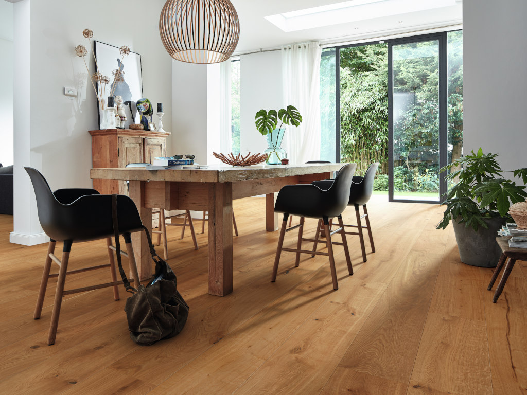 Met deze eiken vloer haal je betaalbare luxe in huis die elke ruimte iets heel bijzonders geeft. Eikenhout heeft niet alleen een prachtige uitstraling, het vangt ook uitstekend temperatuur- en vochtigheidsschommelingen in de kamer op.
