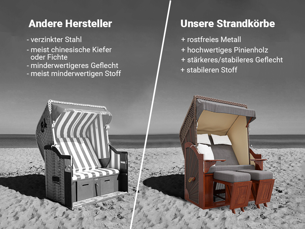 De extra dikke zitkussens maken je Strandkorb bijzonder zacht en gezellig. Zo kun je heerlijk ontspannen, van de zon genieten en dromen van je volgende vakantie aan zee.