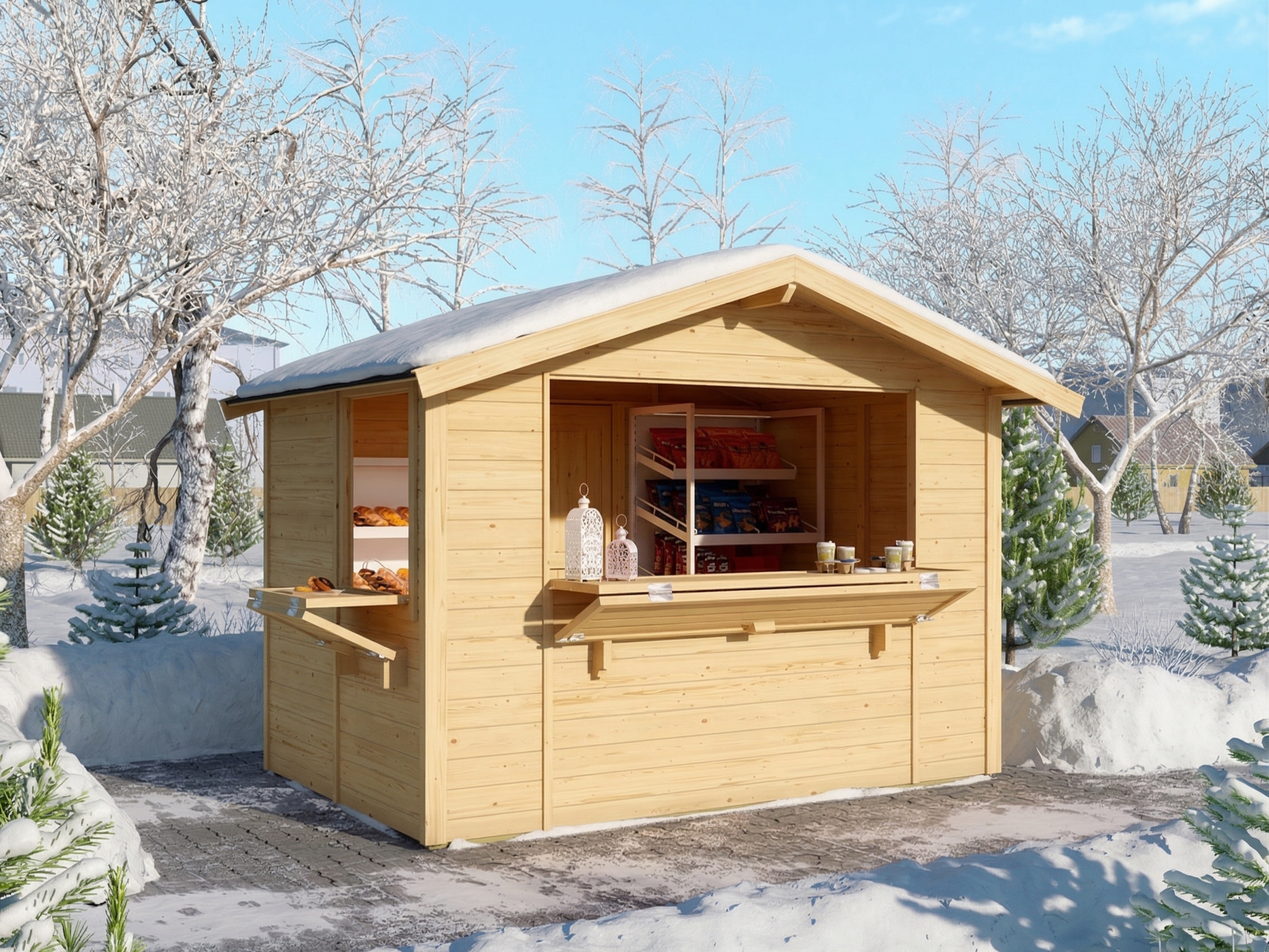 De marktkraam heeft een groot verkoopvenster (199 x 88 cm). - Incl. vloer